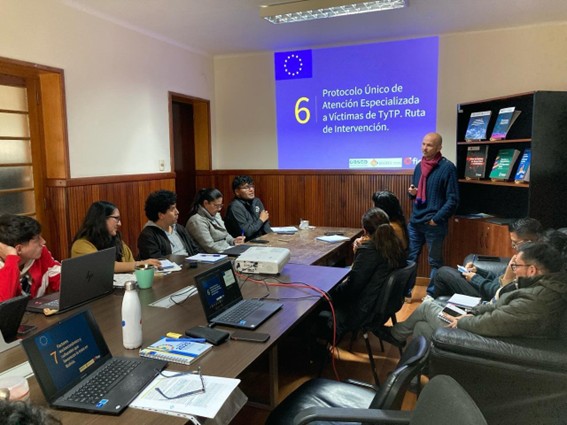 Por otro lado, se acaba de terminar el diseño de un Diplomado en prevención y protección de víctimas de trata de personas que mejora de forma sustancial la oferta pedagógica especializada a los funcionarios públicos de Bolivia en este delito y en la aplicación del enfoque victimocéntrico.